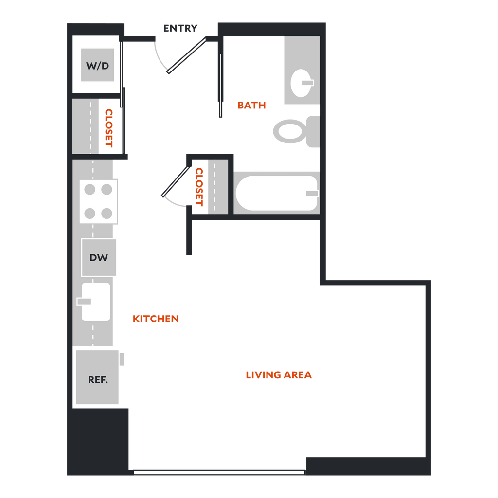 Plan Studio F - Floorplan 1 Apartment Unit: 0328Apartment Model: Plan Studio F$1,434Studio, 1 Bath, 449 sq ftAvailable December 27, 2025Plan Studio A