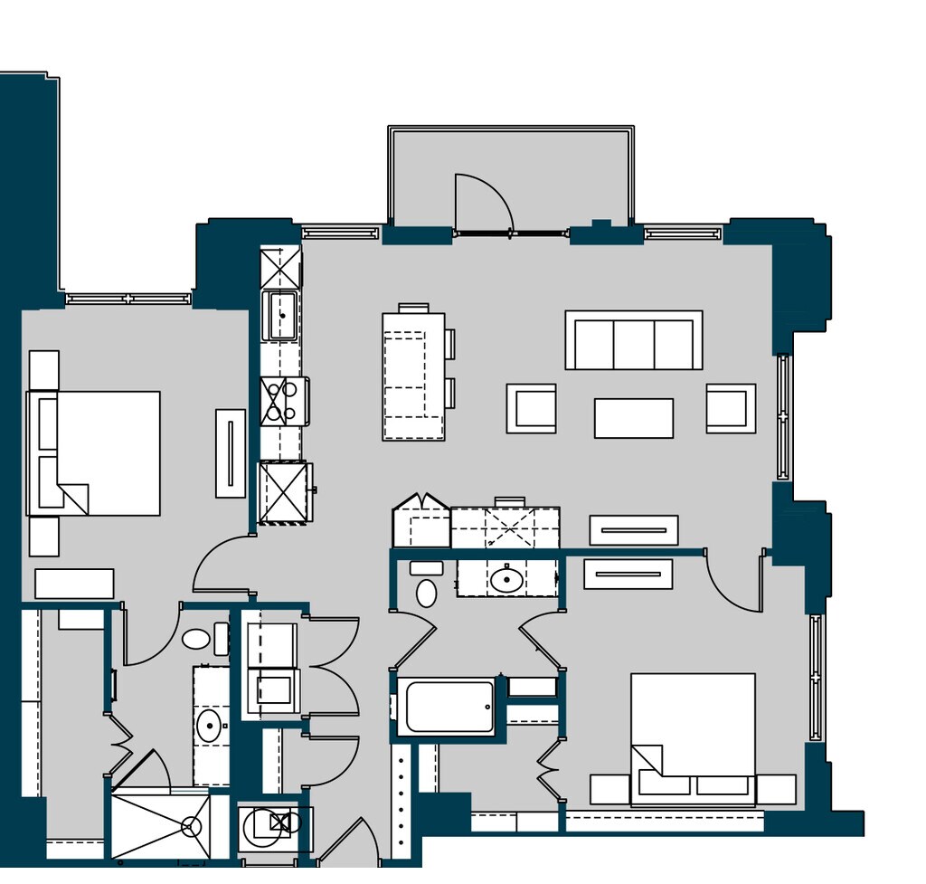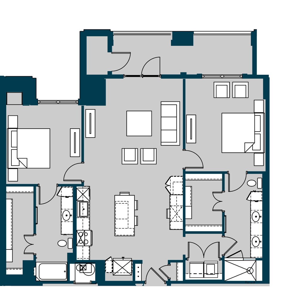 The Carter offers 1 to 3 Bedroom apartments starting from $1,881 and having 723–3,329 sq ft. Here is the current pricing and availability: