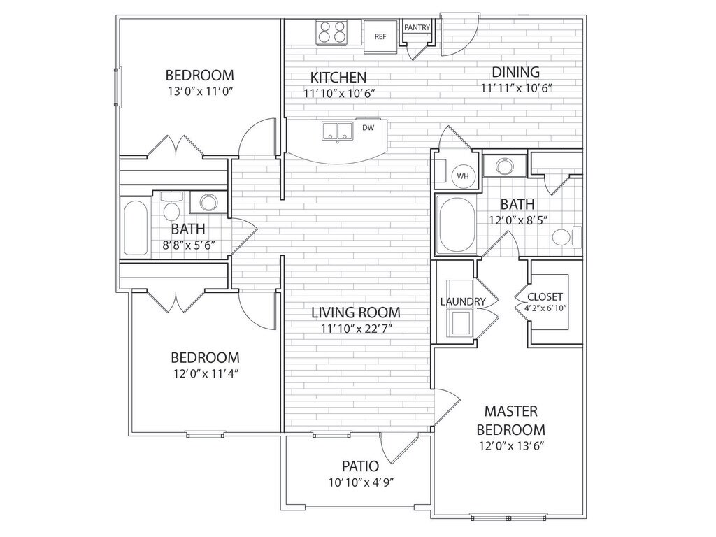 - 3 Bedrooms- Floorplan Zen- From $1,7253 Beds, 2 Baths, 1311 sq ftAvailable Now- Model Gallery- Floorplans- Availability Details- Price - Availability Date - Unit - Sq Ft - View Details - $1,725 - Available Now - 1030CD - 1311 - $1,849 - Available Now - 410CD - 1311 - $1,807 - Available Now - 426CD - 1311 - Model Amenities and Features- Features- Ceiling Fans