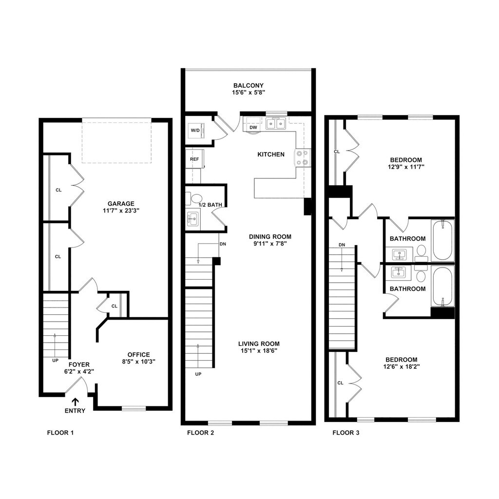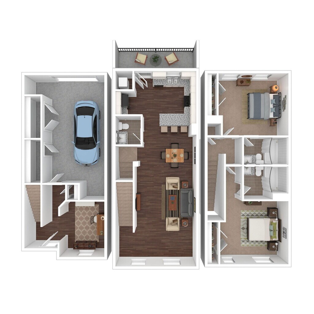 Apartment Model: Duplicity TownhomeCall For Rates2 Bedroom, 2.5 Bath, 1029 sq ftUnavailable![]() - Duplicity Townhome - Floorplan 1 ![]() - Duplicity Townhome - Floorplan 2 ![]() - Duplicity Townhome - Floorplan 3