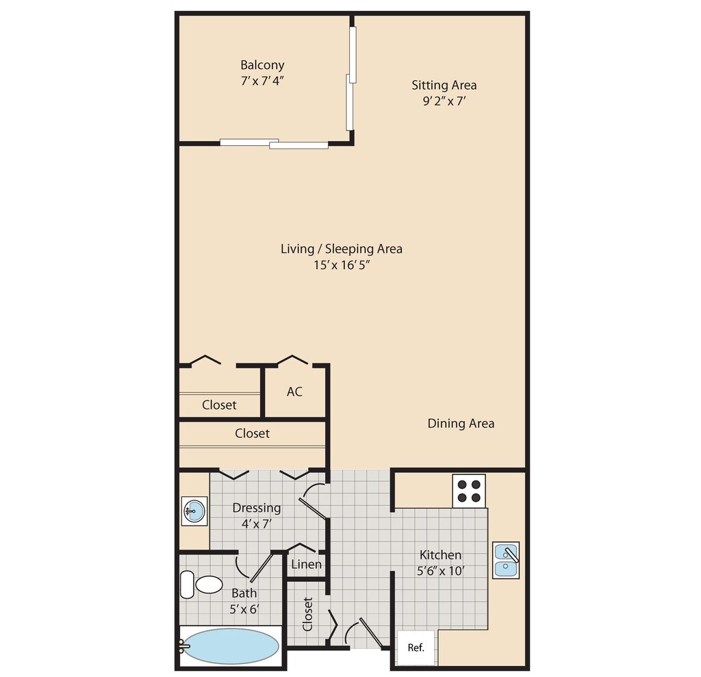 Studio, 1 Bath, 583 sq ftAvailable NowModel Gallery