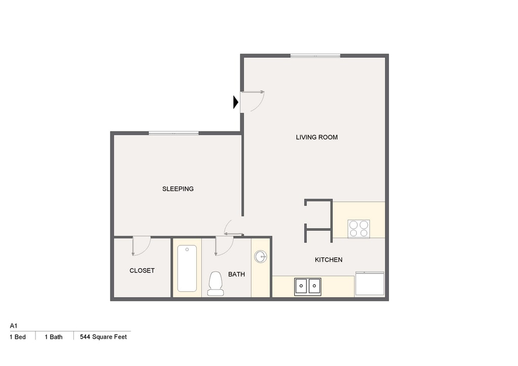 Apartment Model: A-1From $7101 Bedroom, 1 Bath, 544 sq ftAvailable NowFloorplansPhotos![]()