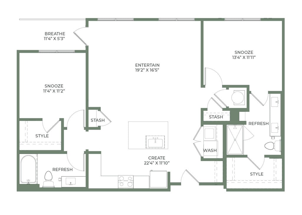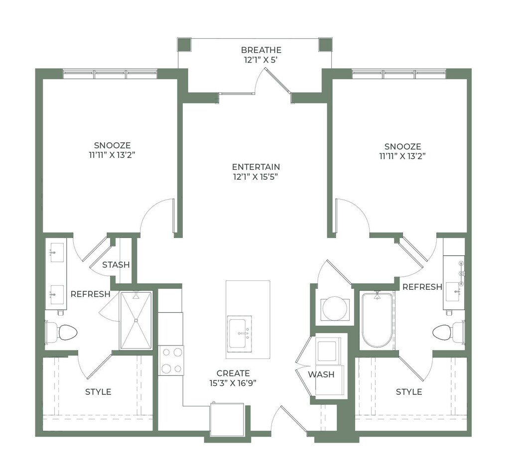 2 Beds, 2 Baths, 1170 sq ftAvailable NowLargest 2 BedroomThis is the largest 2 Bedroom at this PropertyModel Gallery