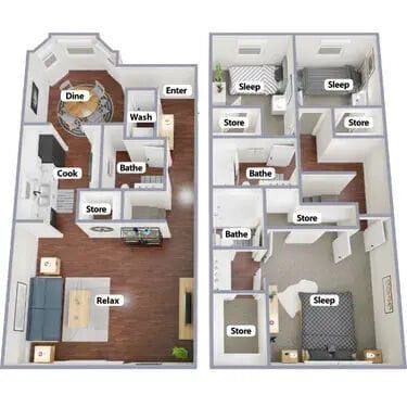 3 Beds, 2.5 Baths, 1206 sq ftModel Gallery