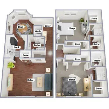 2 Beds, 2 Baths, 1102 sq ftModel Gallery