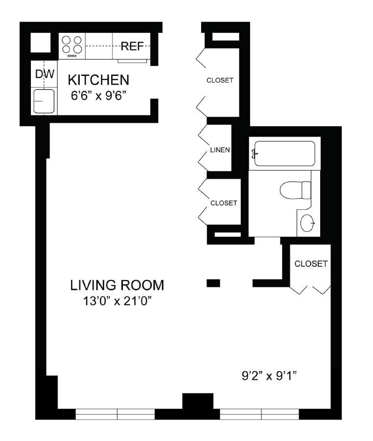 Apartment Model: Junior 41 Bedroom, 1 Bath, 720-870 sq ftAvailable Now![]()