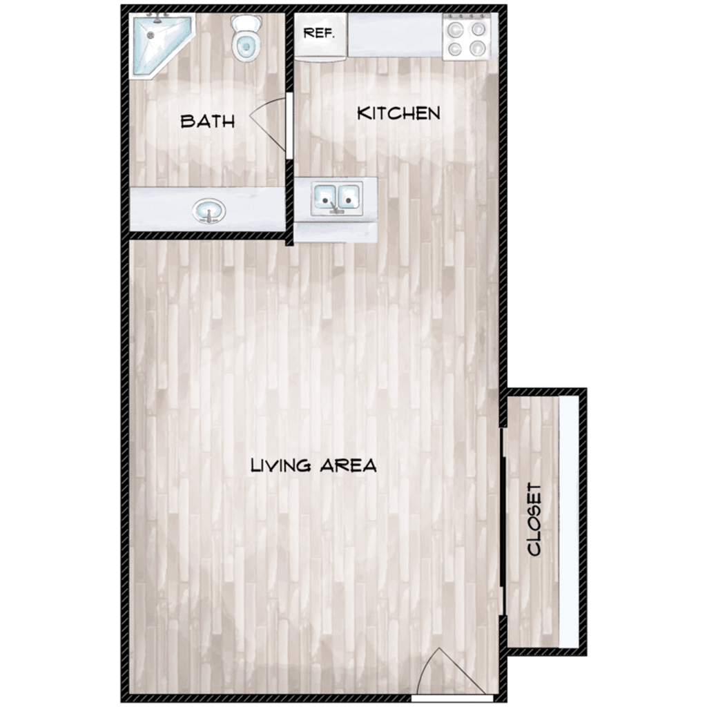 Studio, 1 Bath, 264 sq ftAvailability Details