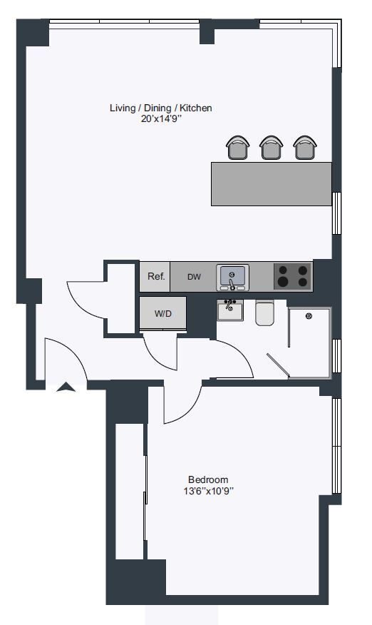 Junior 1 Bedroom - Floorplan 1 Apartment Unit: 307Apartment Model: Junior 1 Bedroom$2,640Studio, 1 Bath, 465 sq ftAvailable December 19, 20251 Bedroom
