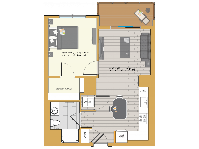 1 Bedroom w/ Balcony - Floorplan 5 2 Bedrooms