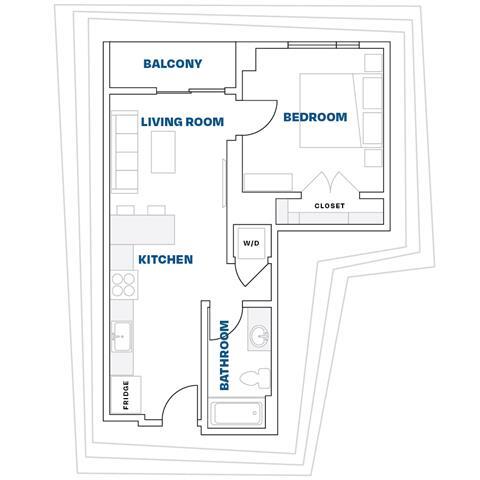 A4 - Floorplan 1 Apartment Unit: 0905Apartment Model: A4$1,9691 Bedroom, 1 Bath, 661 sq ftAvailable NowFloorplan A5