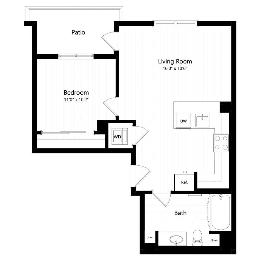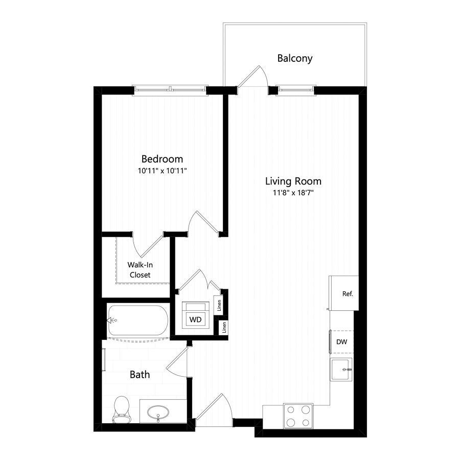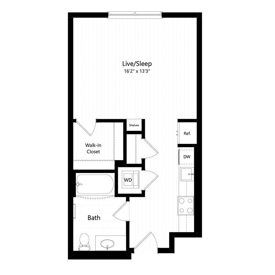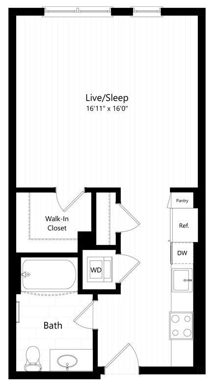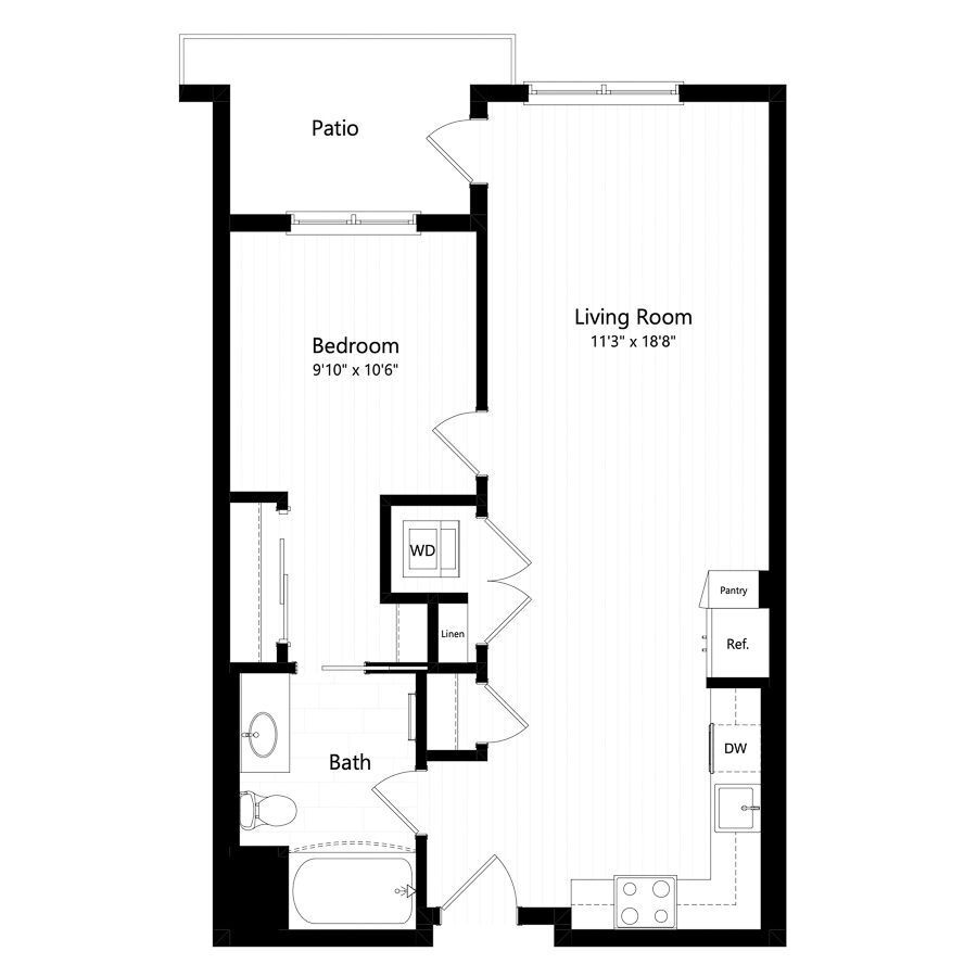 Studio, 1 Bath, 613 sq ftModel Gallery