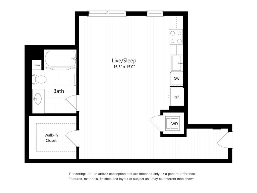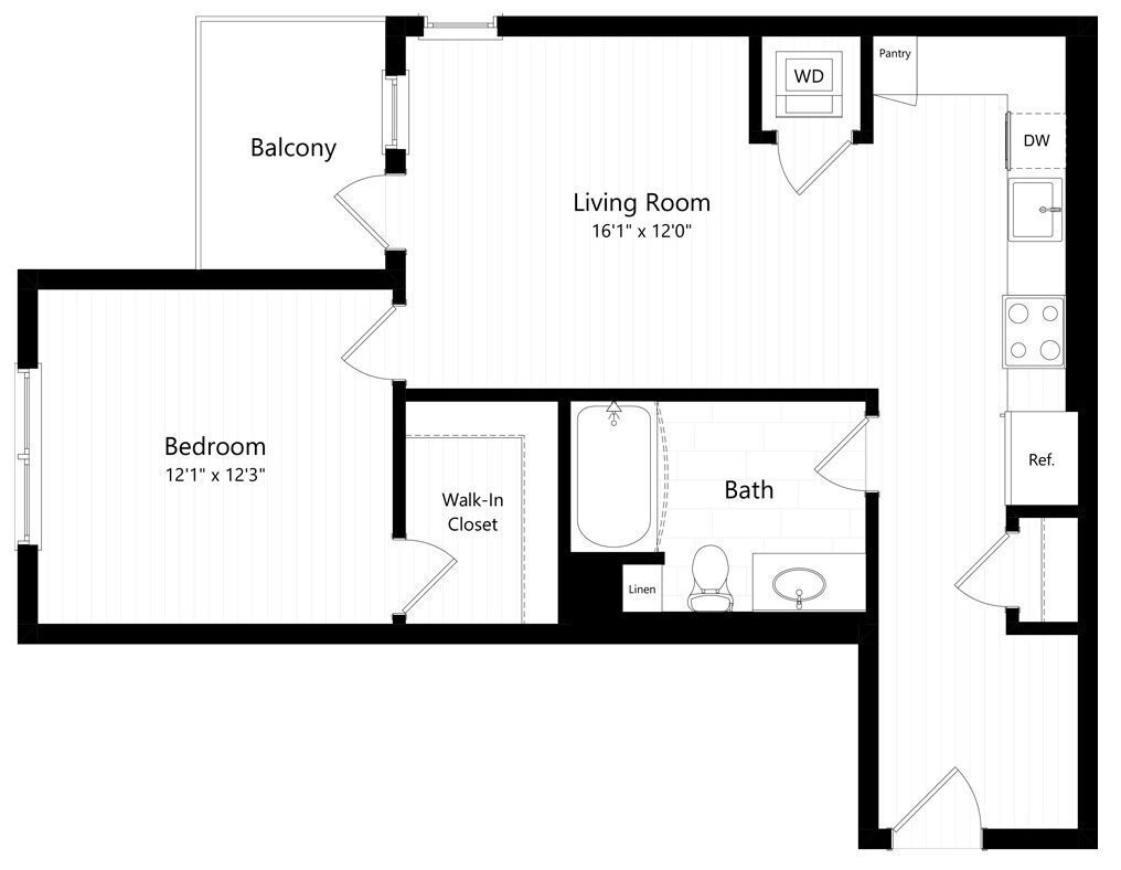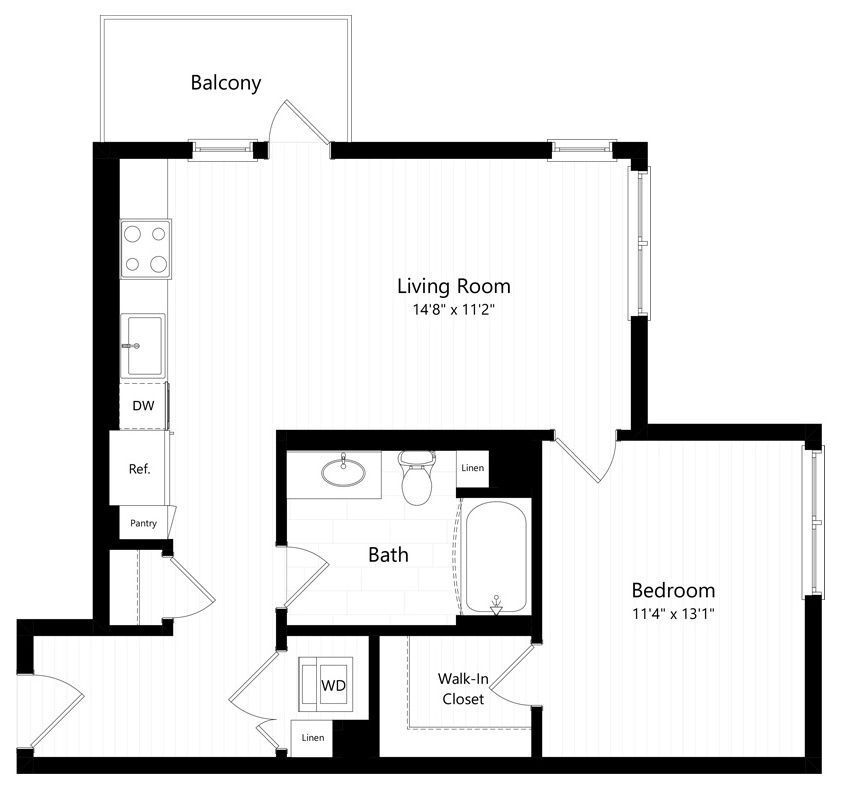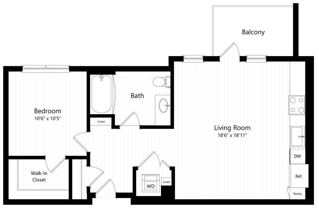 Studio, 1 Bath, 613 sq ftModel Gallery