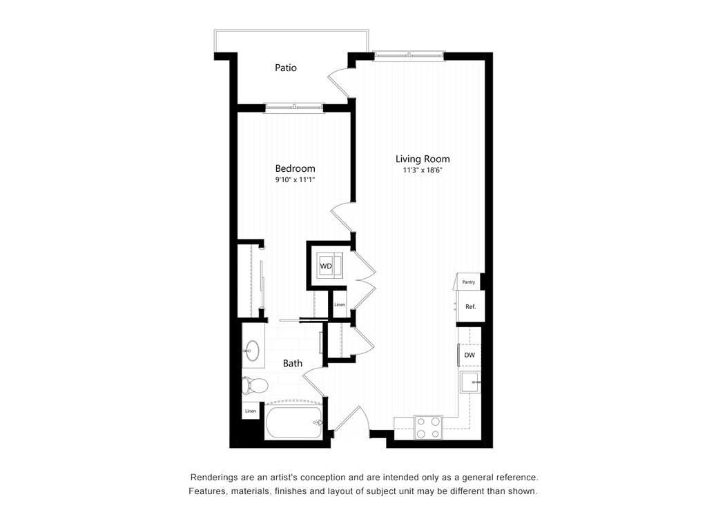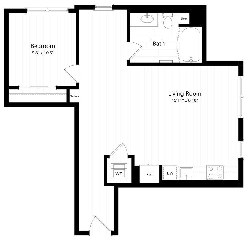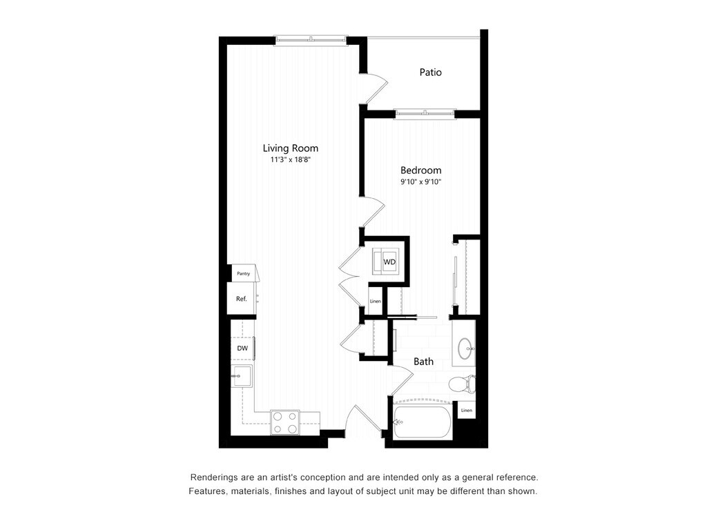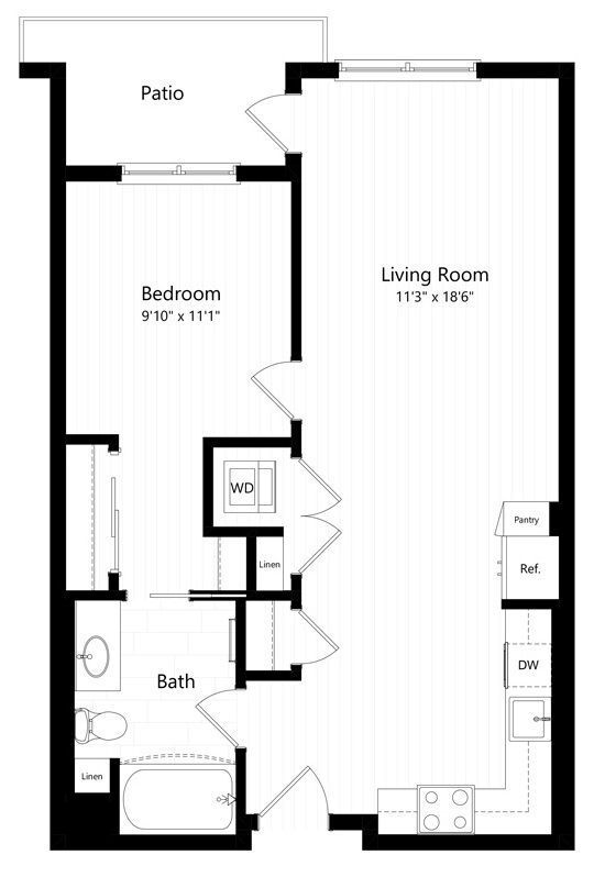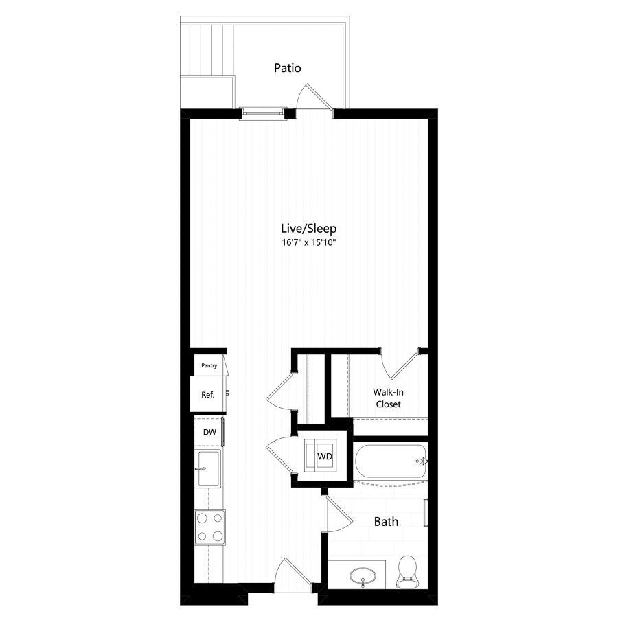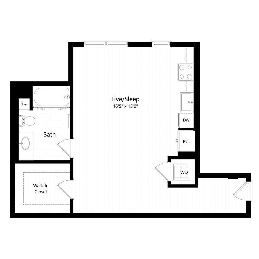 Apartment Model: 1-S1From $2,900Studio, 1 Bath, 532 sq ftAvailable NowFloor plans are artist's rendering. All dimensions are approximate. Actual product and specifications may vary in dimension or detail. Not all features are available in every rental home. Prices and availability are subject to change. Base rent is based on monthly frequency. Additional fees may apply, such as but not limited to package delivery, trash, water, amenities, etc. Deposits vary. Please see a representative for details.