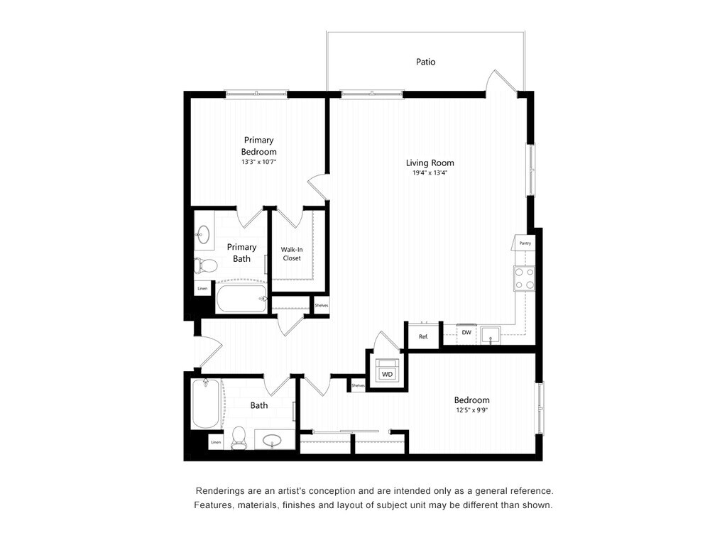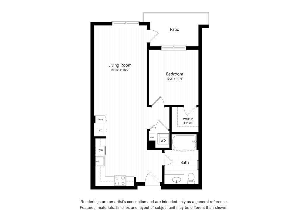 1-S2 - Floorplan 1 Floor plans are artist's rendering. All dimensions are approximate. Actual product and specifications may vary in dimension or detail. Not all features are available in every rental home. Prices and availability are subject to change. Base rent is based on monthly frequency. Additional fees may apply, such as but not limited to package delivery, trash, water, amenities, etc. Deposits vary. Please see a representative for details.