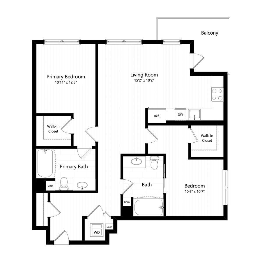 1 Bed, 1 Bath, 644-658 sq ftAvailable NowModel Gallery