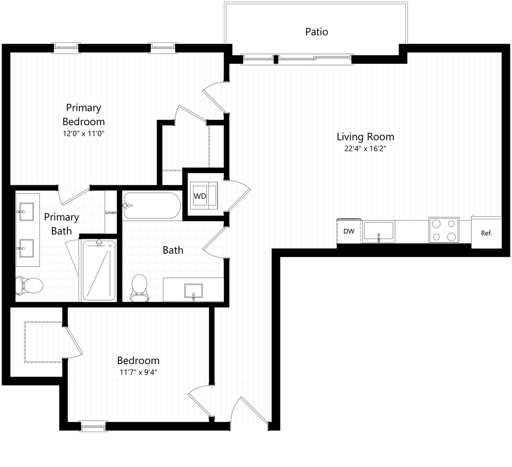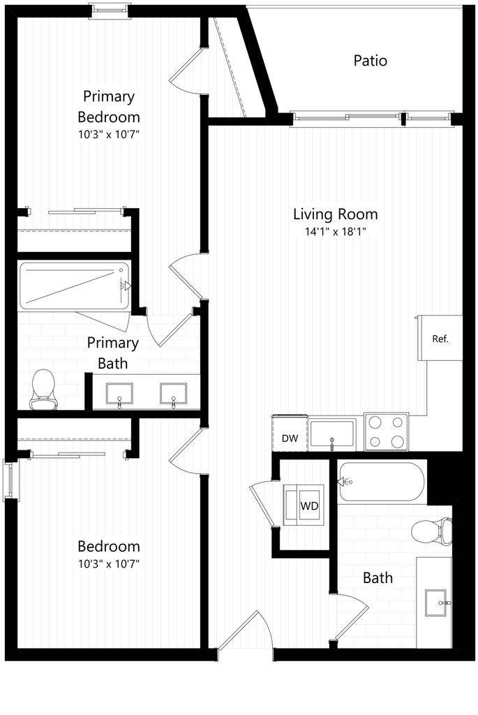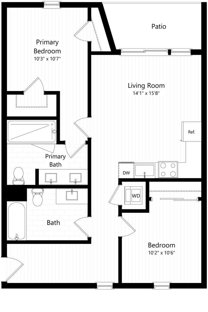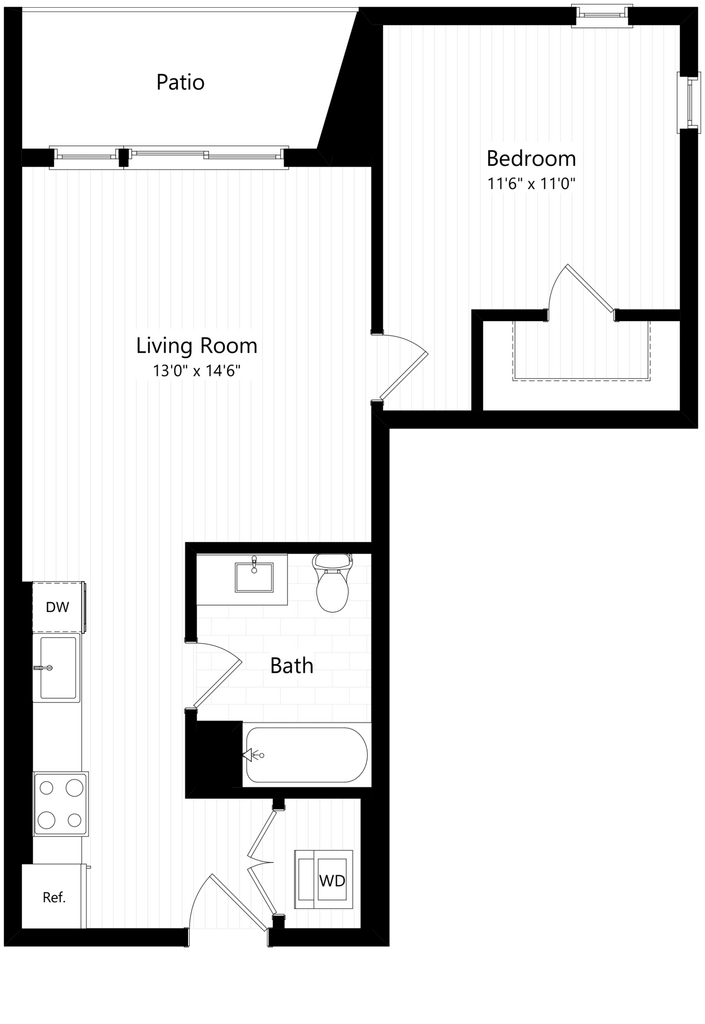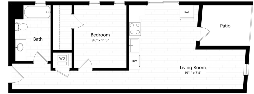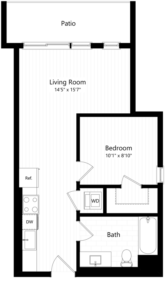 Apartment Model: E - 1x1$3,5701 Bedroom, 1 Bath, 545 sq ftAvailable NowFloor plans are artist's rendering. All dimensions are approximate. Actual product and specifications may vary in dimension or detail. Not all features are available in every rental home. Prices and availability are subject to change. Base rent is based on monthly frequency. Additional fees may apply, such as but not limited to package delivery, trash, water, amenities, etc. Deposits vary. Please see a representative for details.