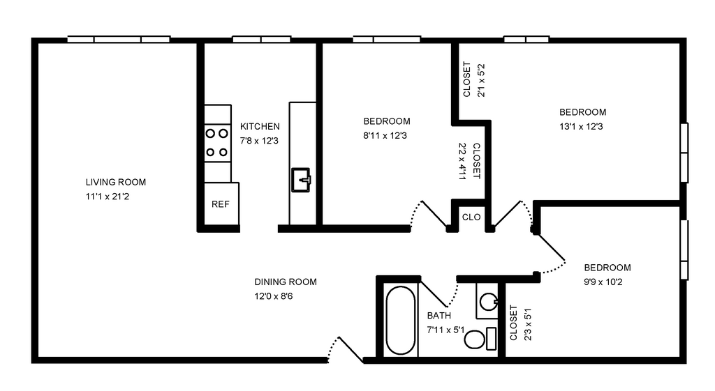 2 Bed 1 Bath - Floorplan 13 ![]()