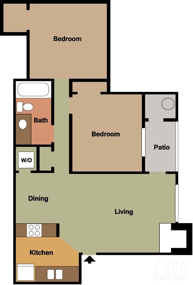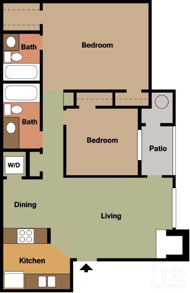 Apartment Model: B1D2 Bedroom, 1 Bath, 775 sq ftAvailable Now![]()