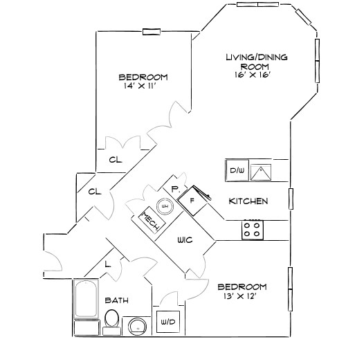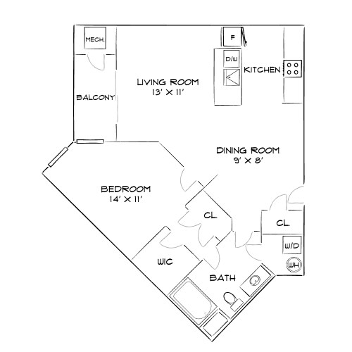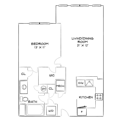 Apartment Model: Design 1M-EFrom $2,2481 Bedroom, 1 Bath, 796 sq ftAvailable Now![]()