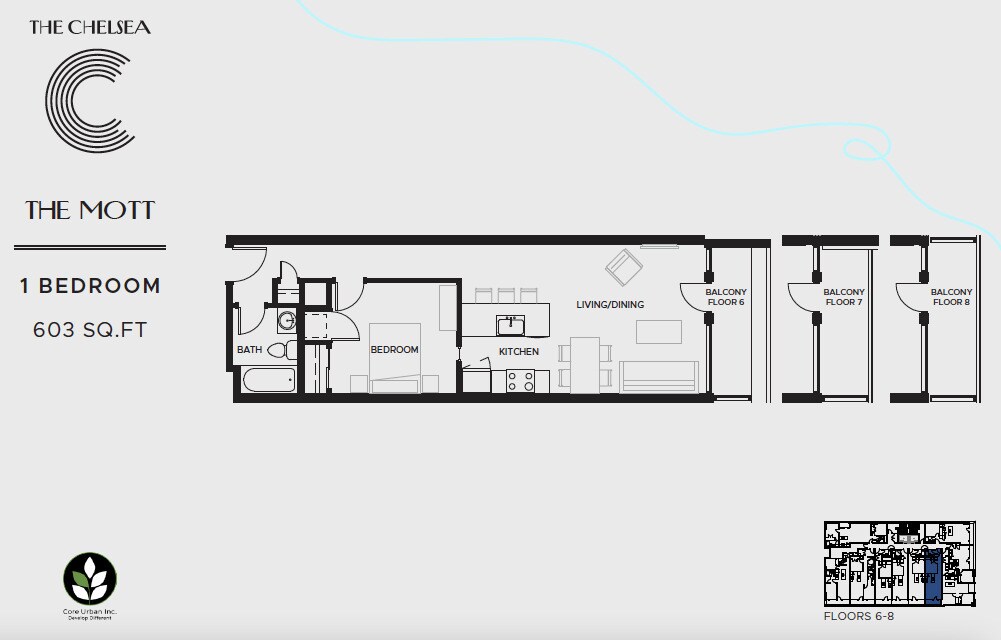 The Chelsea offers 1 to 2 Bedroom apartments starting from $1,950 and having 602–961 sq ft. Here is the current pricing and availability: