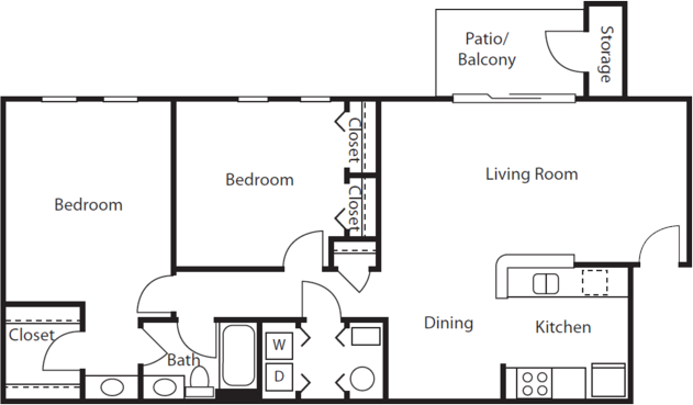 2 Beds, 2 Baths, 1168 sq ftAvailable NowLargest 2 BedroomThis is the largest 2 Bedroom at this PropertyModel Gallery