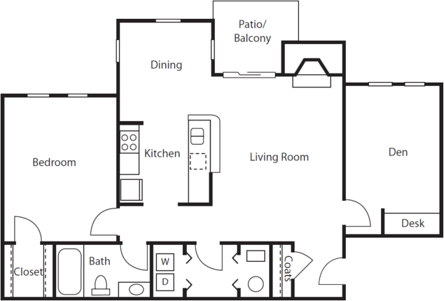 1 Bed, 1 Bath, 728 sq ftAvailable NowModel Gallery