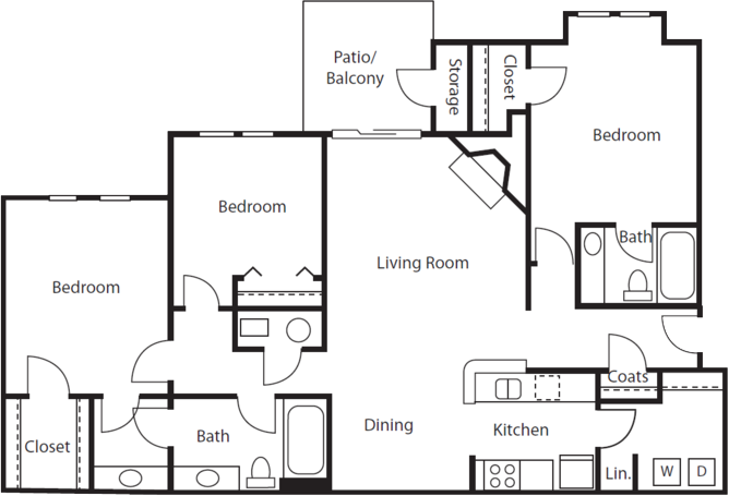 Apartment Model: B32 Bedroom, 2 Bath, 1168 sq ftUnavailable![]()
