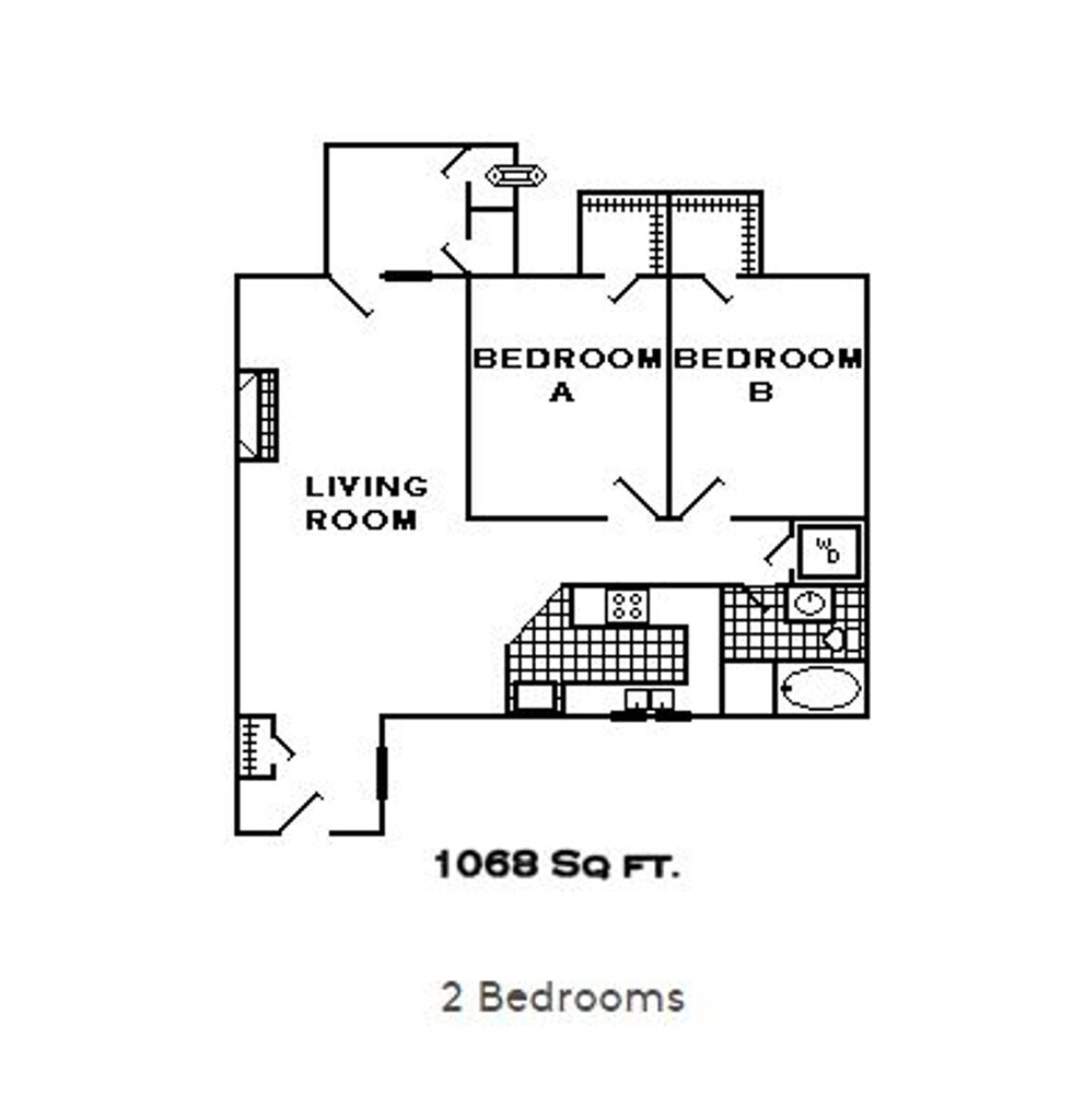Apartment Model: 2A2 Bedroom, 1 Bath, 1096 sq ftAvailable December 26, 2025FloorplansPhotos![]()