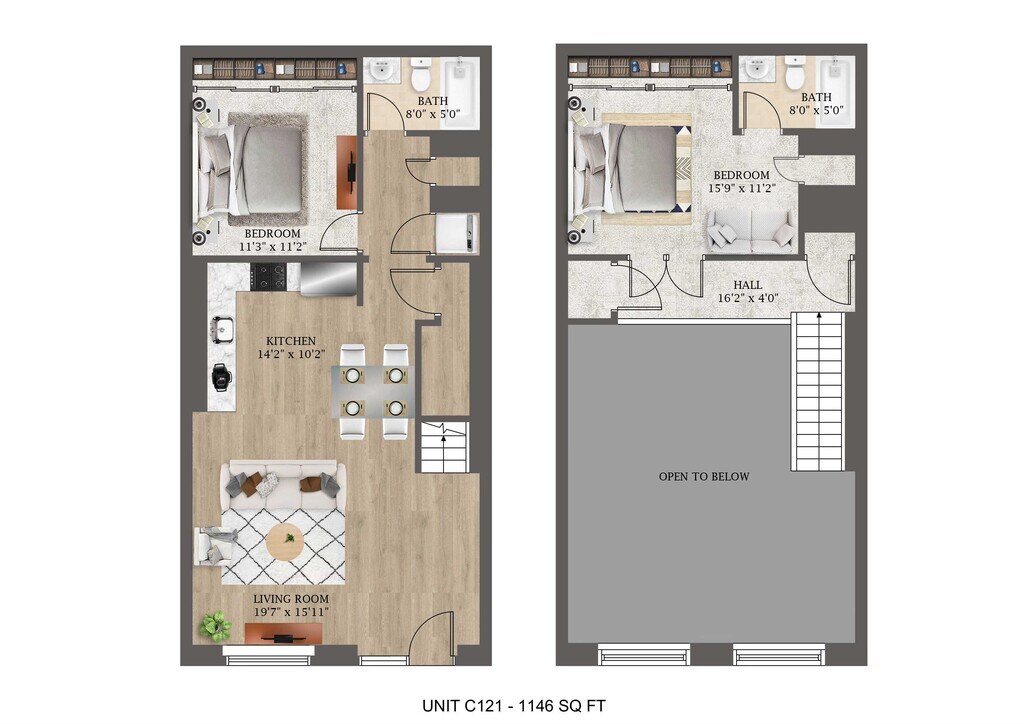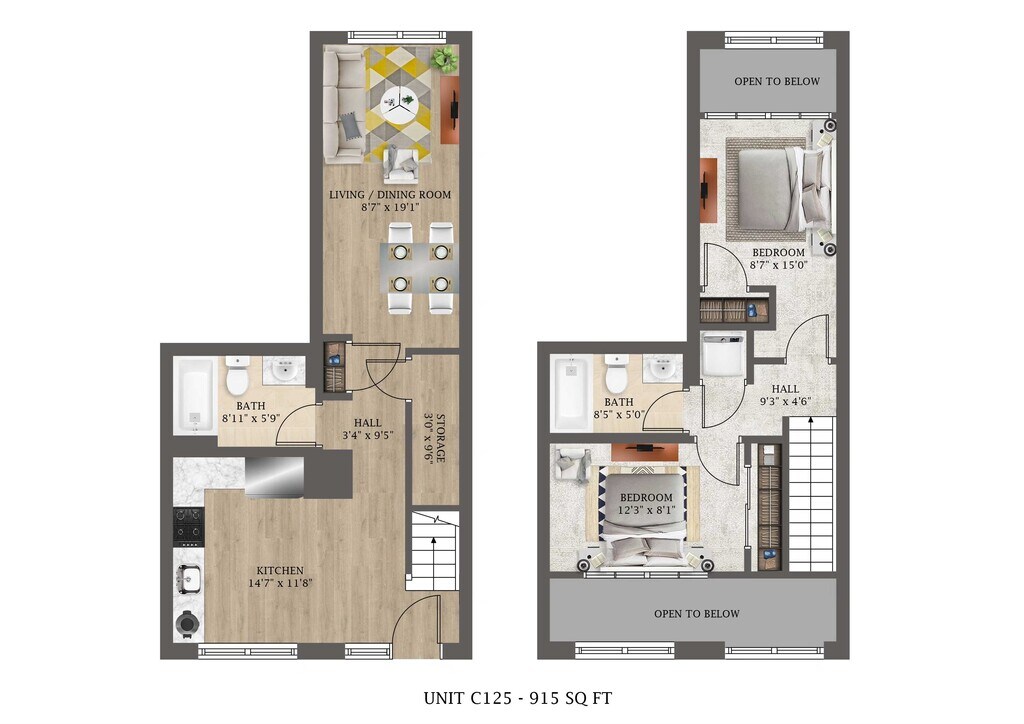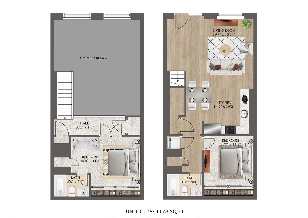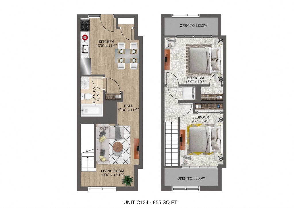 Apartment Model: Two Bedroom LoftCall For Rates2 Bedroom, 2 Bath, 915 sq ftUnavailable![]()