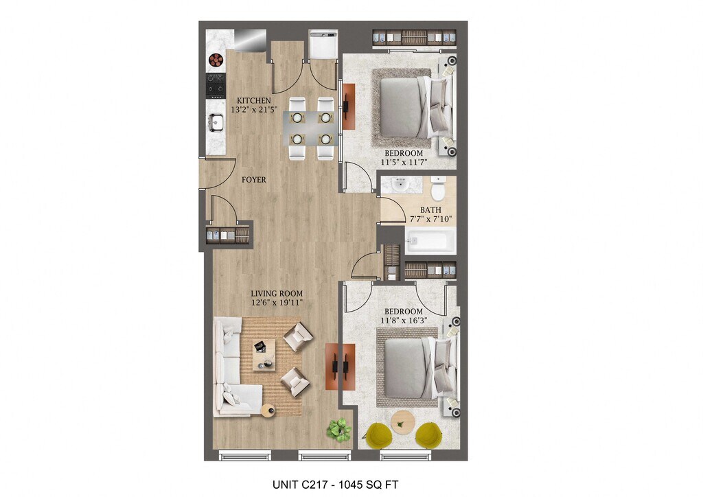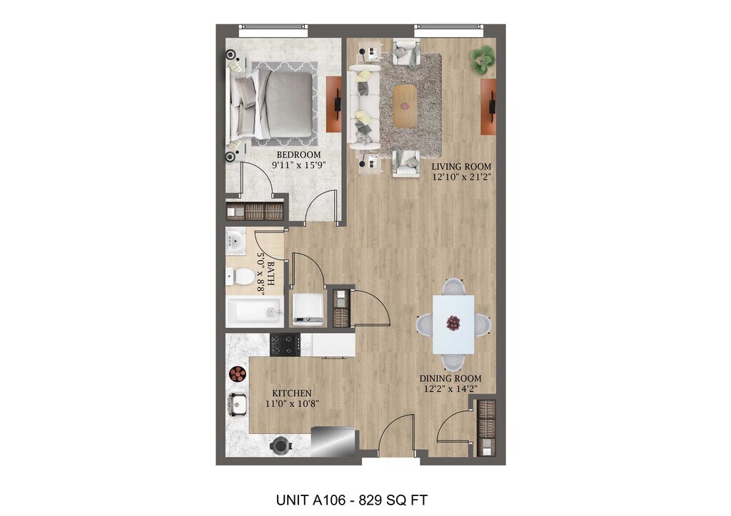 1 Bed, 1 Bath, 962-1045 sq ftPlus FeesAvailable NowModel Gallery
