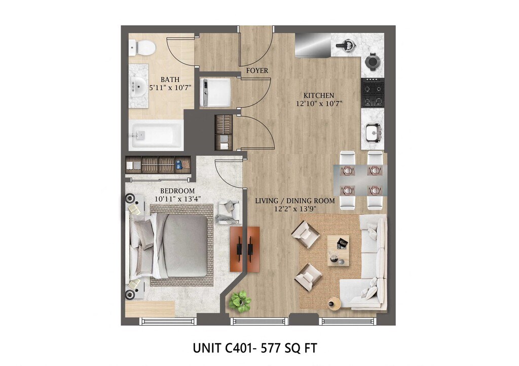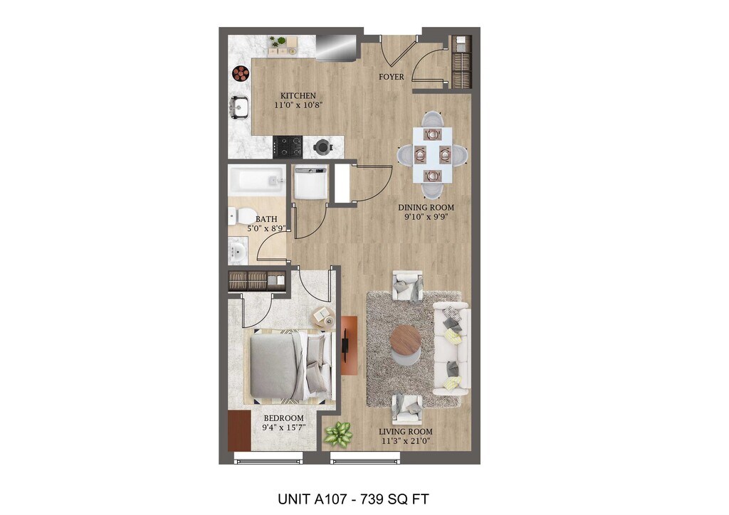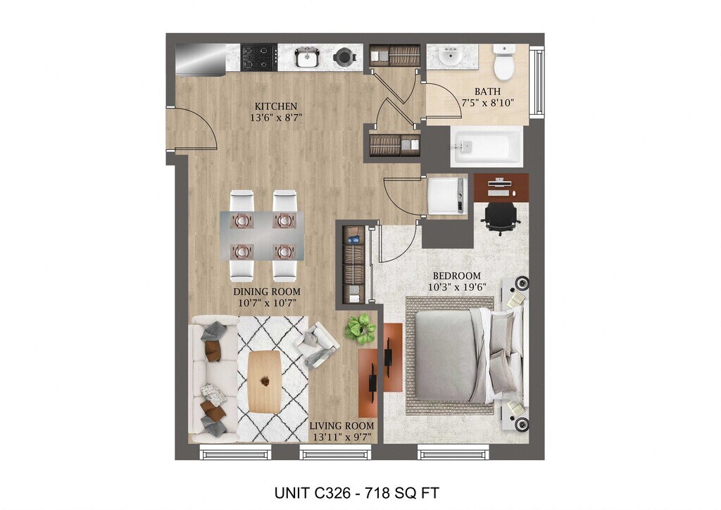 1 Bed, 1 Bath, 709-738 sq ftPlus FeesAvailable NowModel Gallery