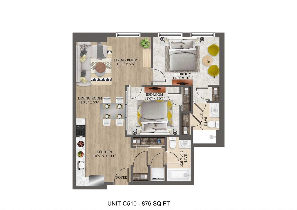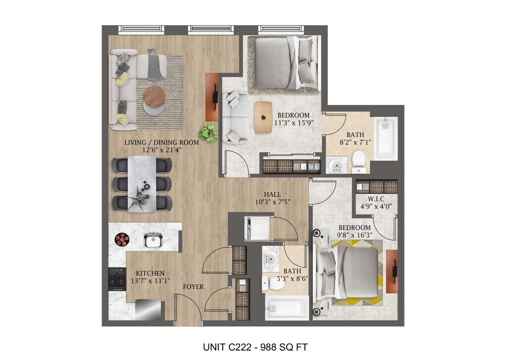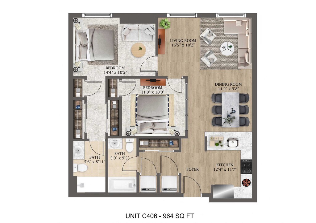 2 Beds, 2 Baths, 915 sq ftModel Gallery