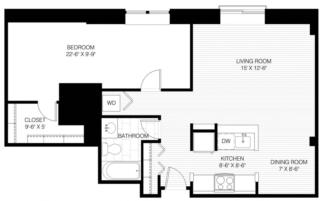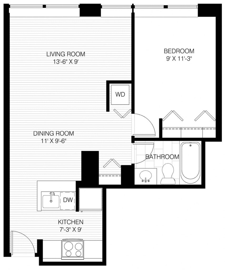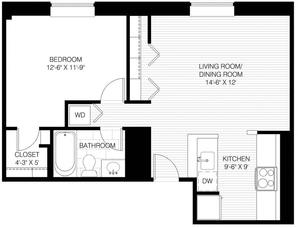 1 Bed 1 Bath - Floorplan 1 ![]()