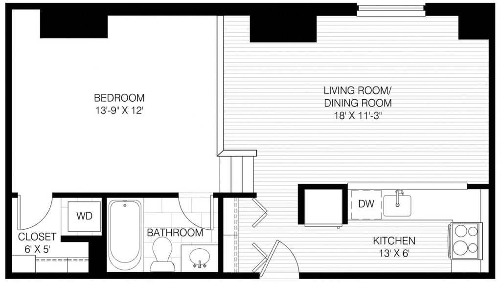 1 Bed 1 Bath - Floorplan 6 ![]()