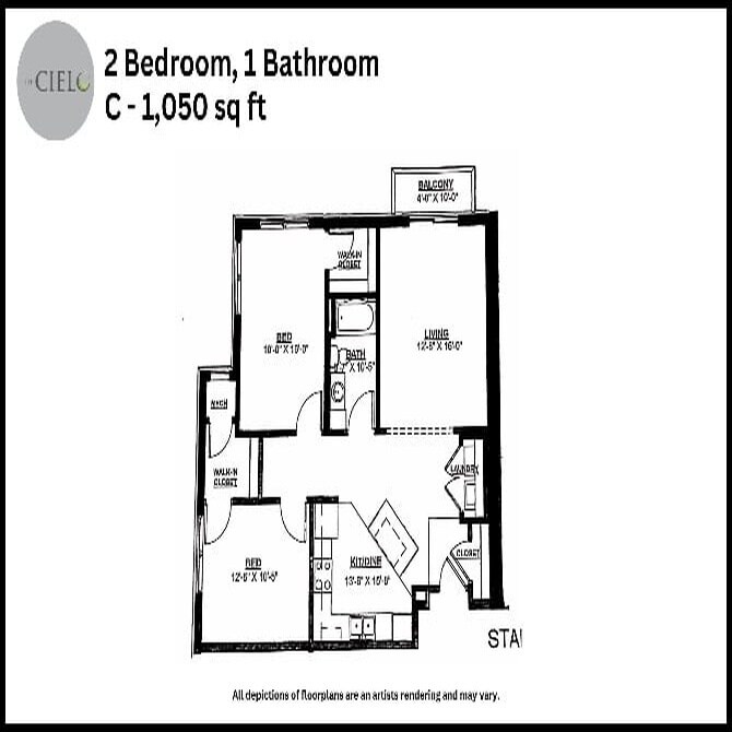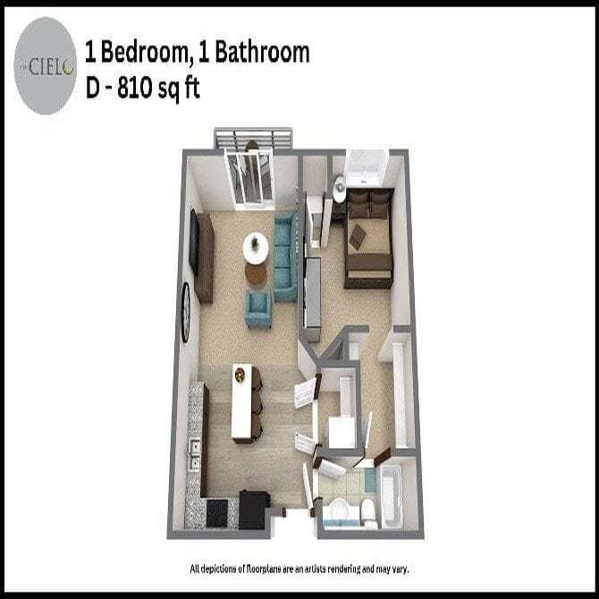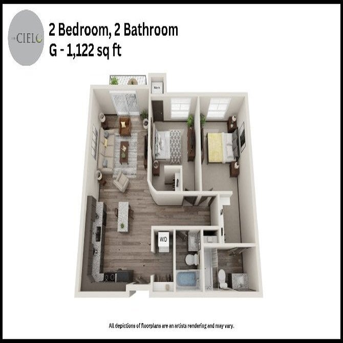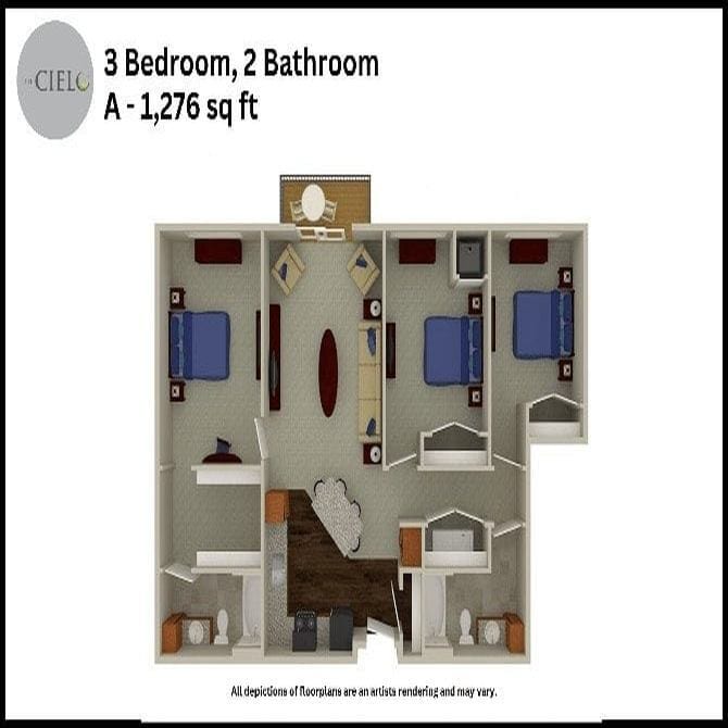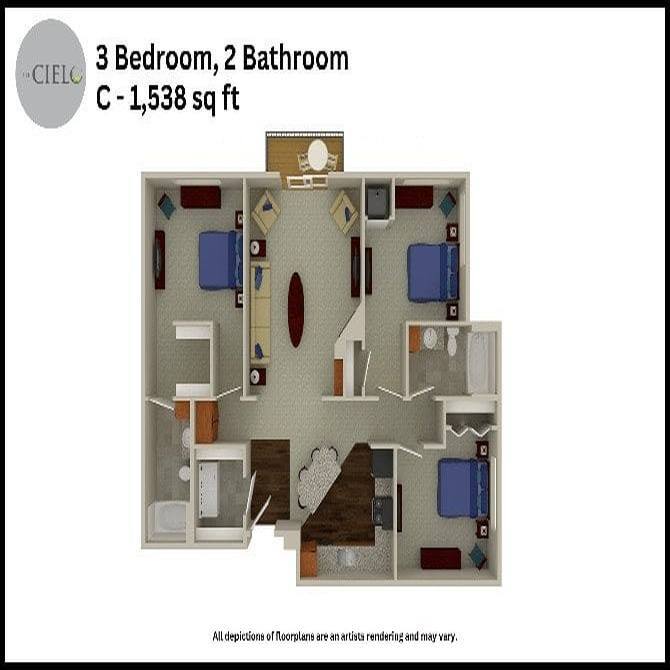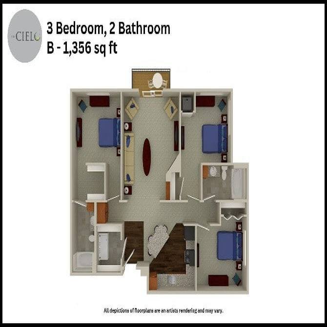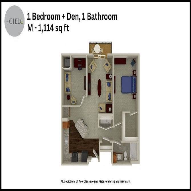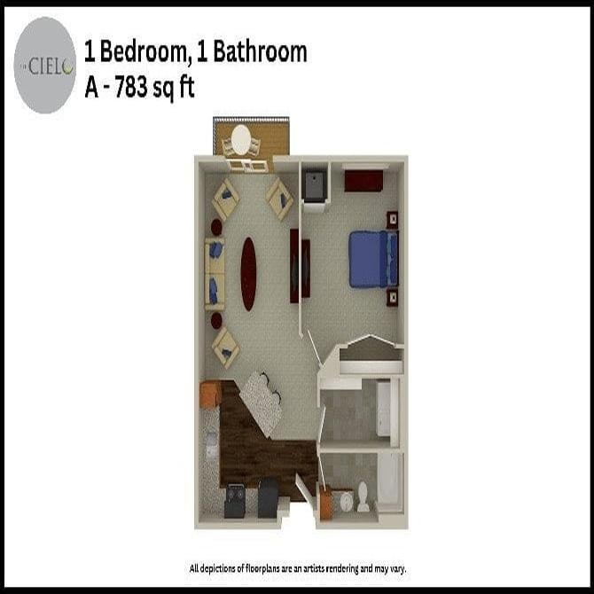 Studio to 3 Bedroom Apartments at The Cielo Apartments currently range from $1,278 to $1,869