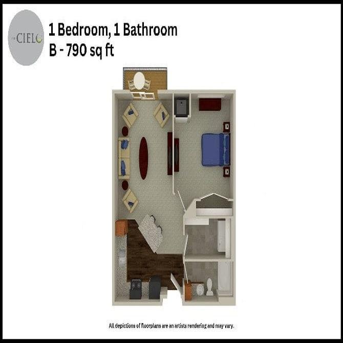 Studio D - Floorplan 2 1 Bedroom