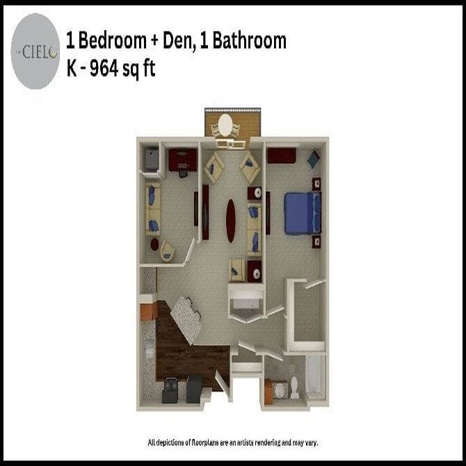 The Cielo Apartments offers Studio to 3 Bedroom apartments starting from $1,278 and having 540–1,538 sq ft. Here is the current pricing and availability: