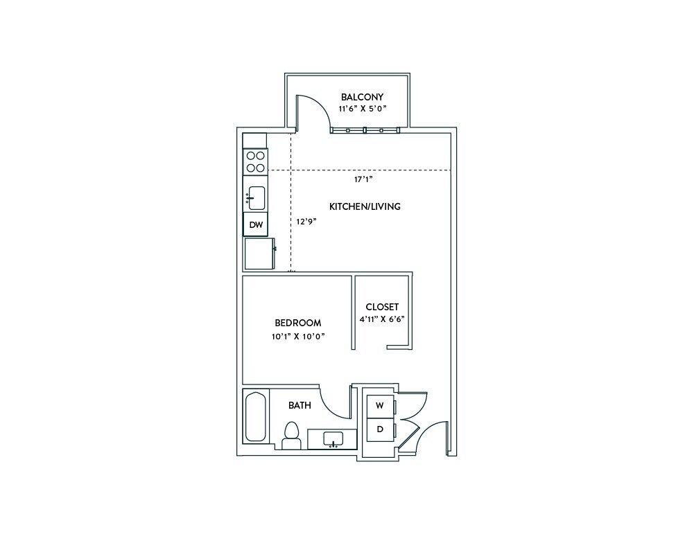 Studio, 1 Bath, 640 sq ftLargest StudioThis is the largest Studio at this PropertyModel Gallery