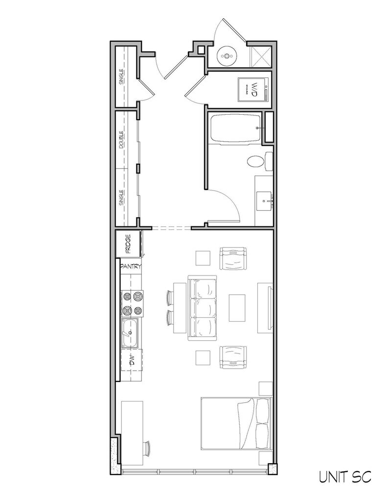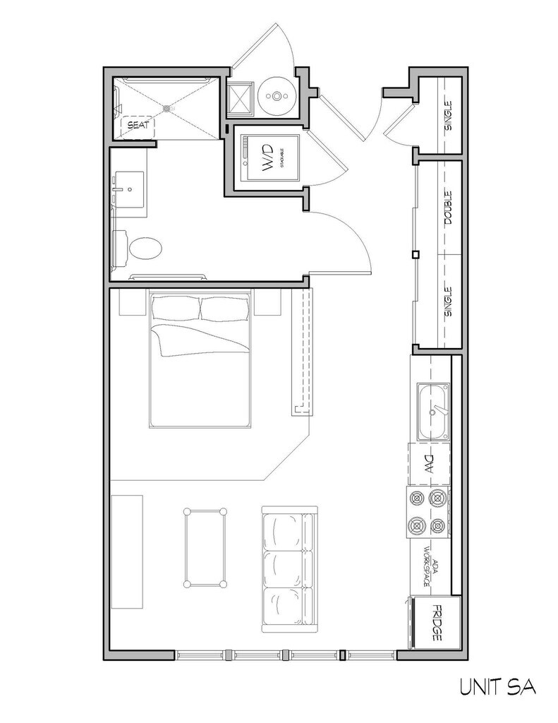 SA - Floorplan 1 Apartment Unit: 341Apartment Model: SA$1,400Studio, 1 Bath, 443 sq ftAvailable NowFloorplan SD