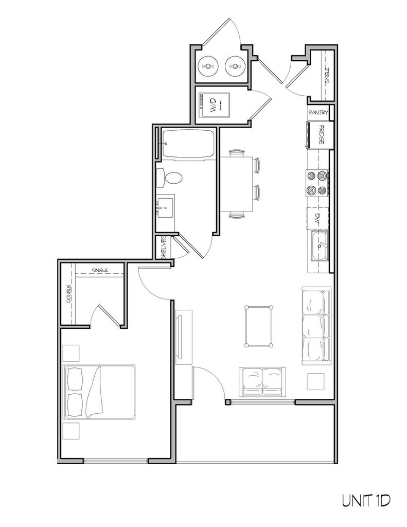 1D - Floorplan 1 Apartment Unit: 103Apartment Model: 1D$1,5991 Bedroom, 1 Bath, 676 sq ftAvailable NowApartment Unit: 105Apartment Model: 1D$1,5991 Bedroom, 1 Bath, 676 sq ftAvailable NowApartment Unit: 304Apartment Model: 1D$1,5251 Bedroom, 1 Bath, 631 sq ftAvailable NowFloorplan 1E