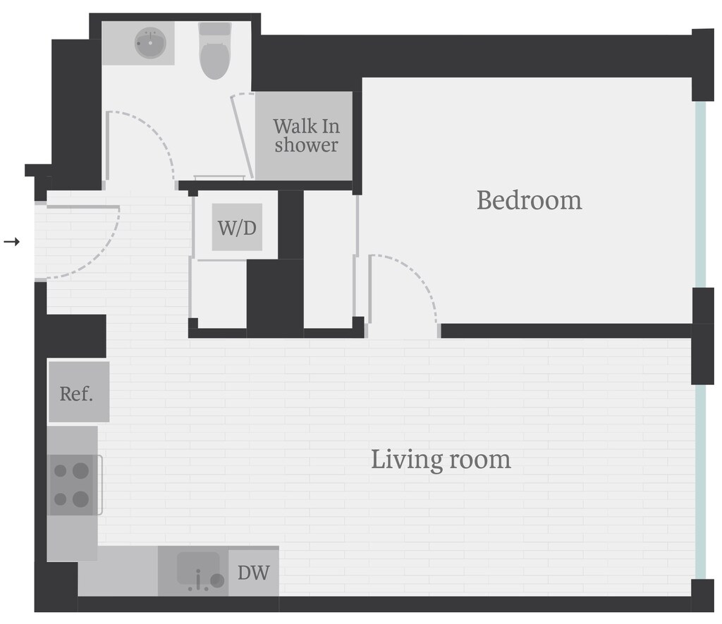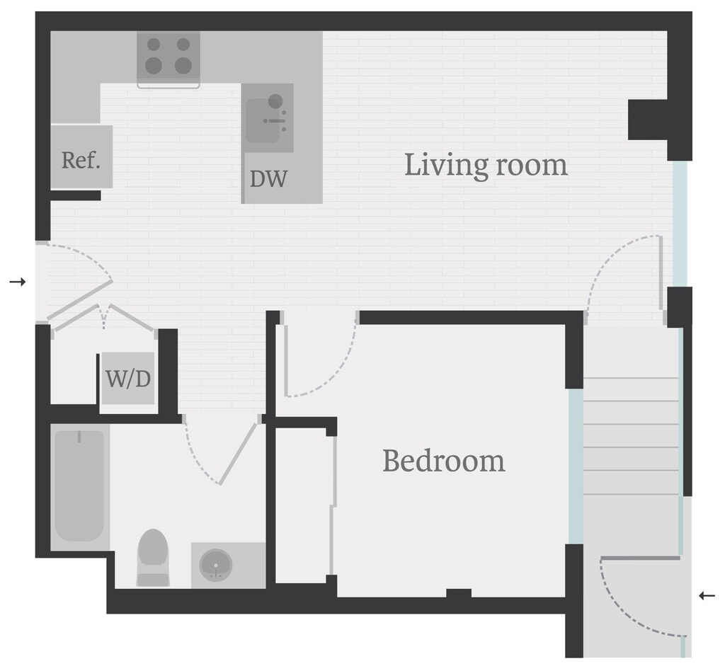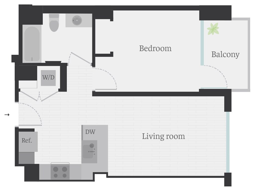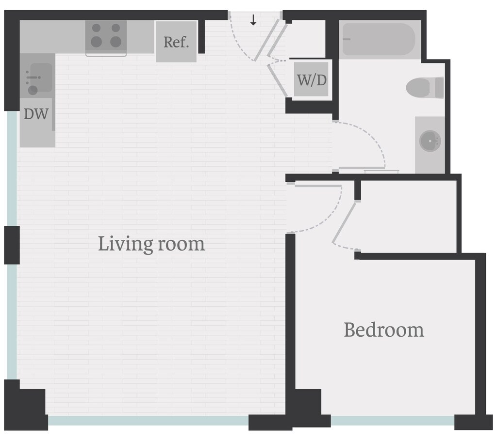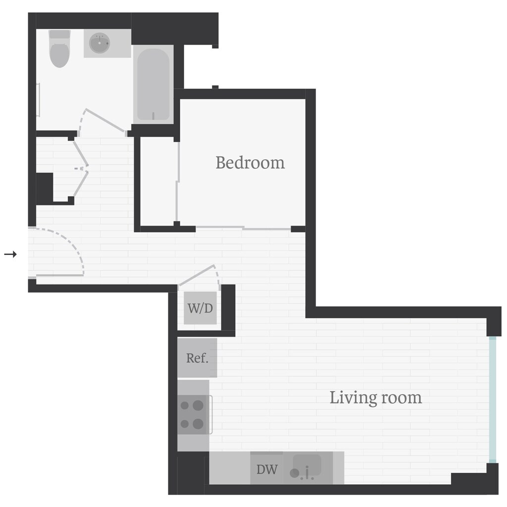 1 Bed, 1 Bath, 522 sq ftModel Gallery