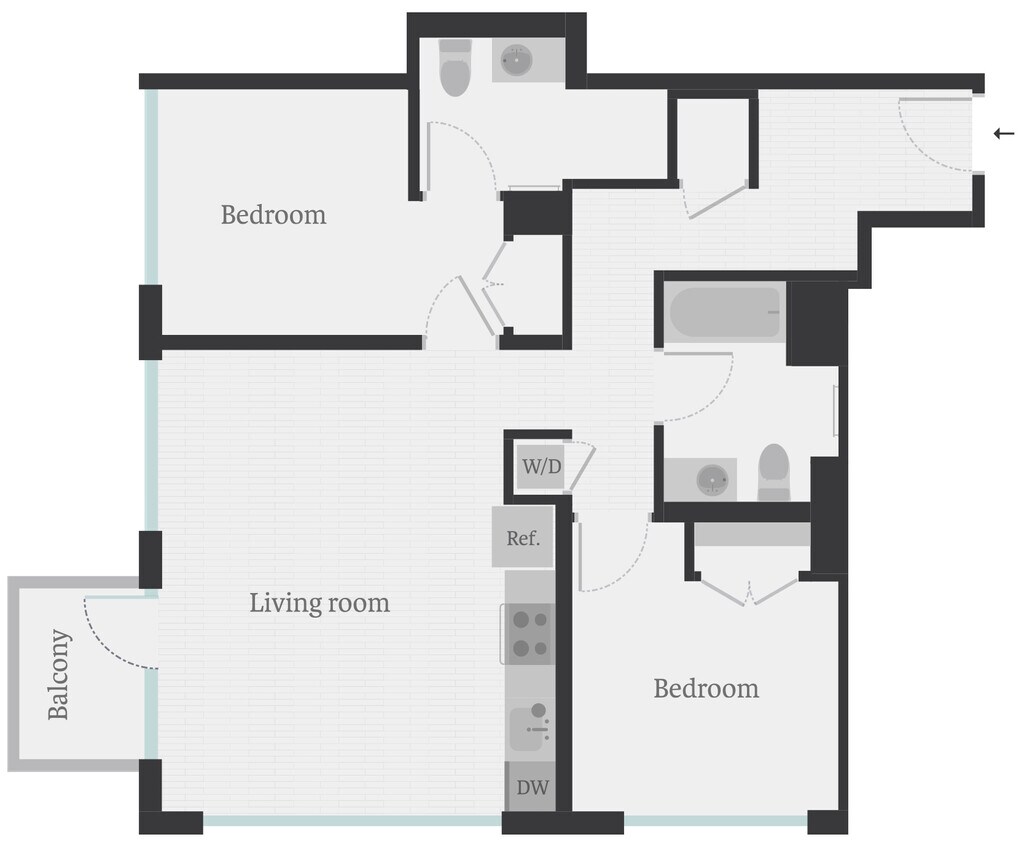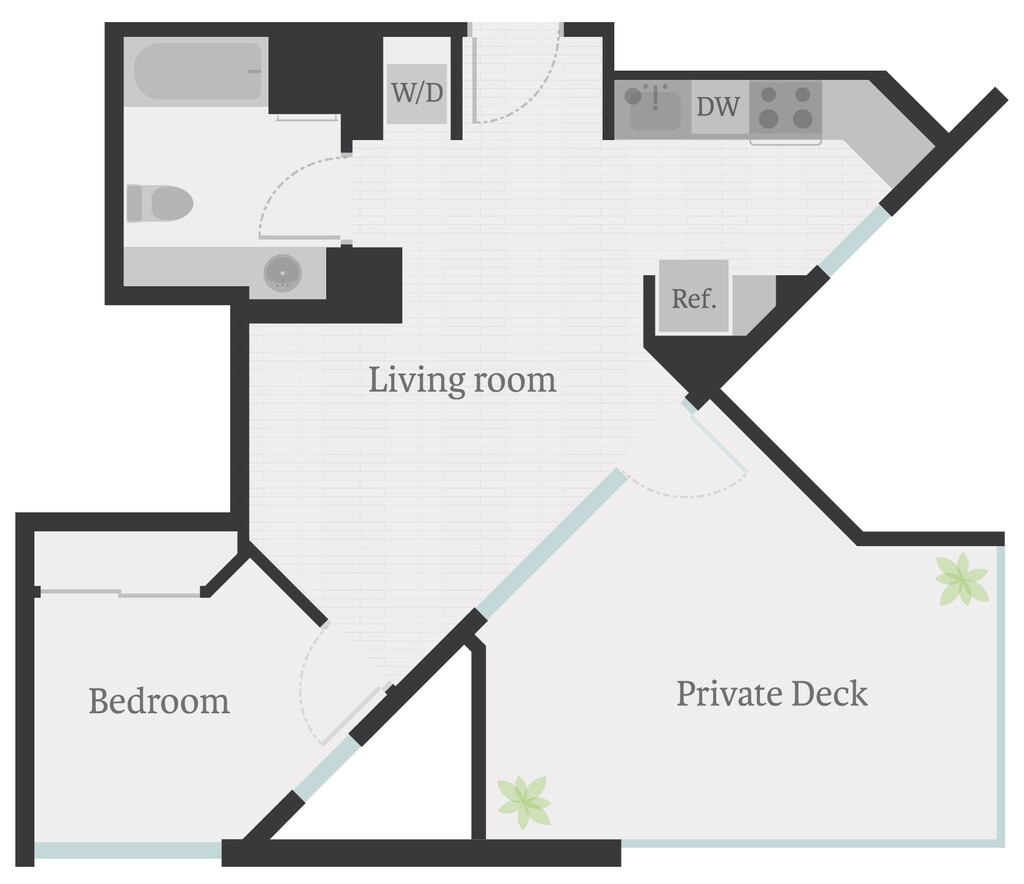 1 Bed, 1 Bath, 626-633 sq ftAvailable NowModel Gallery