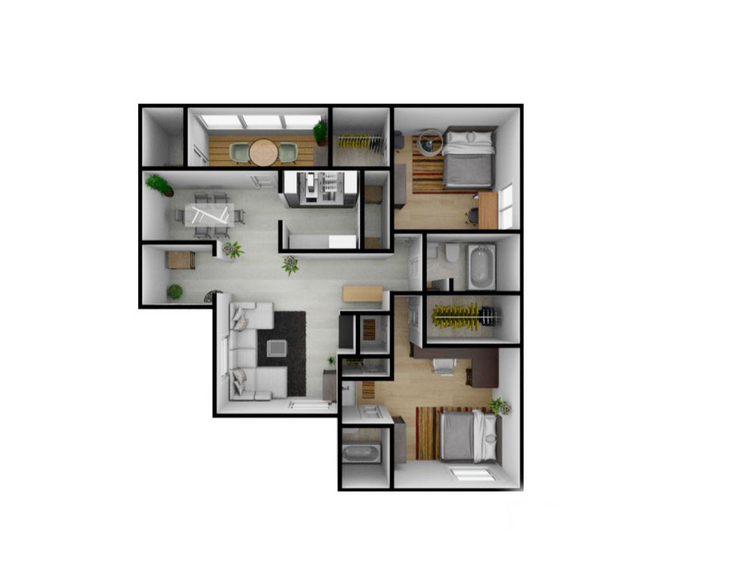 2 Beds, 2 Baths, 1235 sq ftAvailable NowModel Gallery