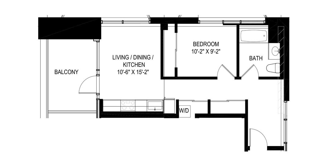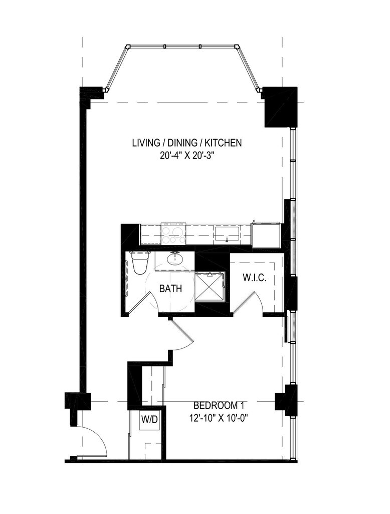 S2 - Floorplan 2 Apartment Unit: 805Apartment Model: S2$2,105Studio, 1 Bath, 410 sq ftAvailable December 26, 2025Floorplan S1