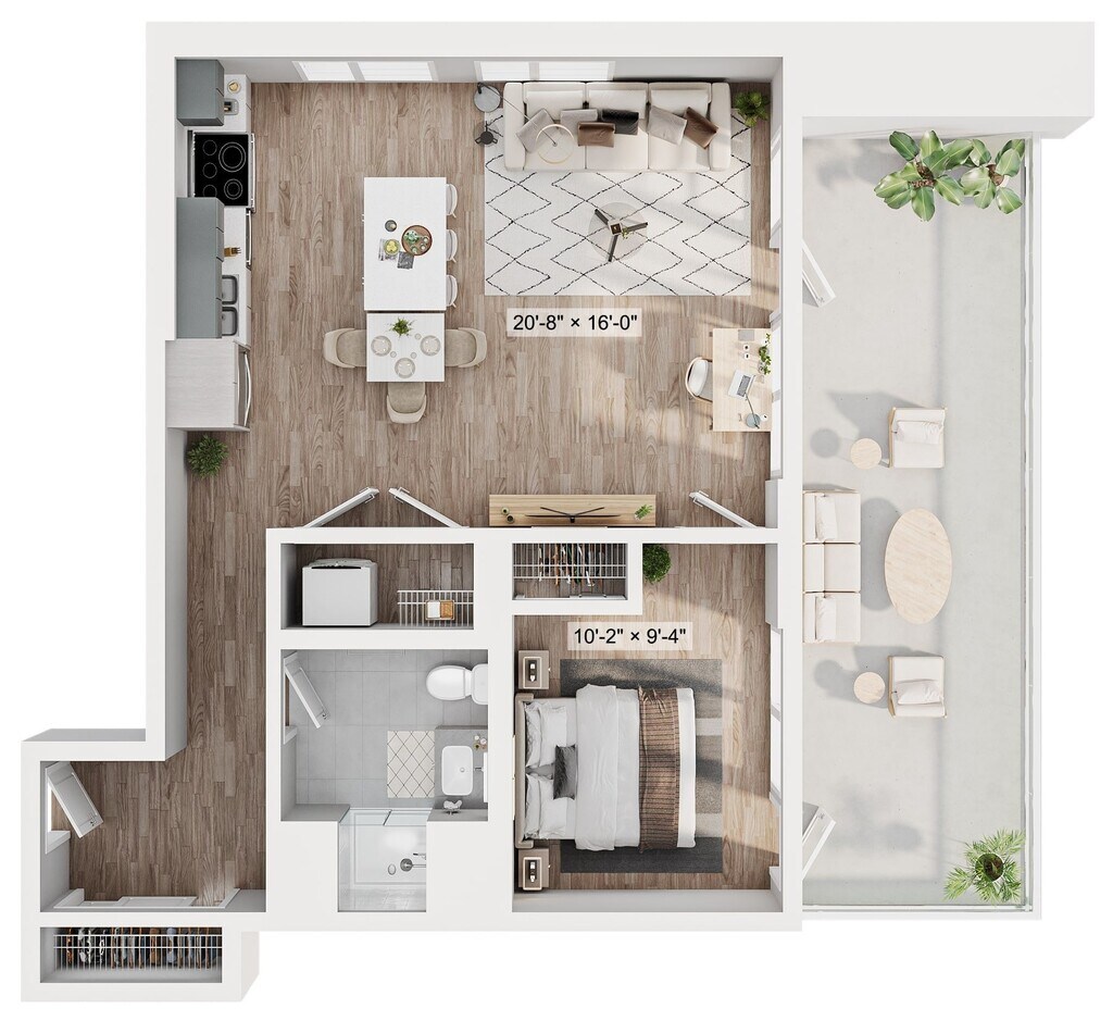 Studio, 1 Bath, 504 sq ftModel Gallery