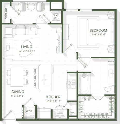 Apartment Model: A3From $1,6511 Bedroom, 1 Bath, 678 sq ftAvailable May 8, 2026Floor plans are artist's rendering. All dimensions are approximate. Actual product and specifications may vary in dimension or detail. Not all features are available in every rental home. Please see a representative for details.