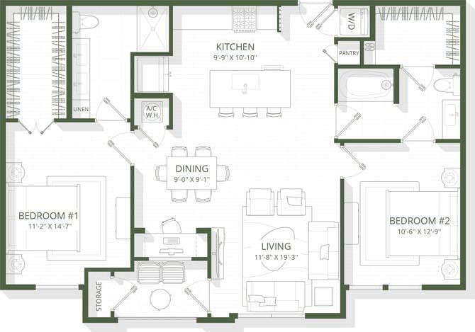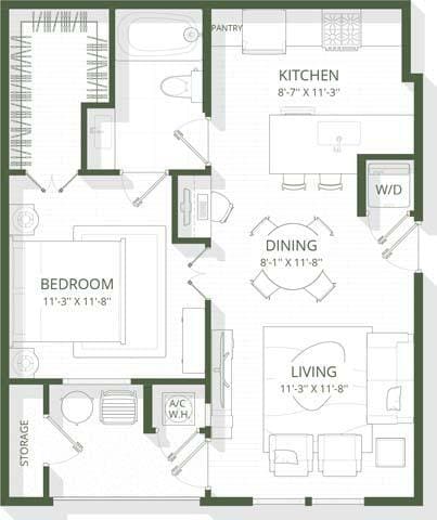 Apartment Model: A8aFrom $1,8611 Bedroom, 1 Bath, 800 sq ftAvailable May 8, 2026Floor plans are artist's rendering. All dimensions are approximate. Actual product and specifications may vary in dimension or detail. Not all features are available in every rental home. Please see a representative for details.