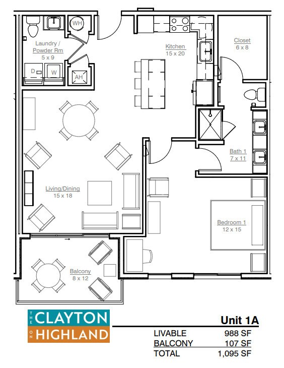 The Clayton on Highland offers 1 Bedroom apartments starting from $1,700 and having 988 sq ft. Here is the current pricing and availability: