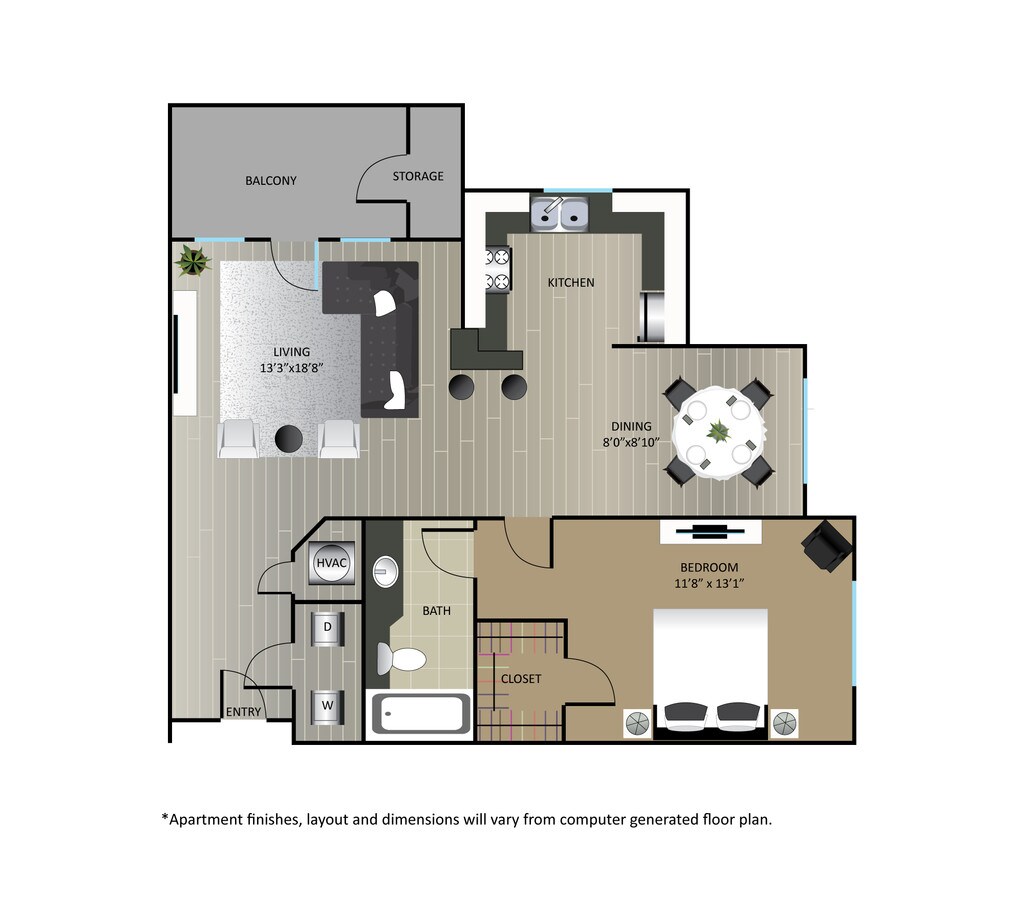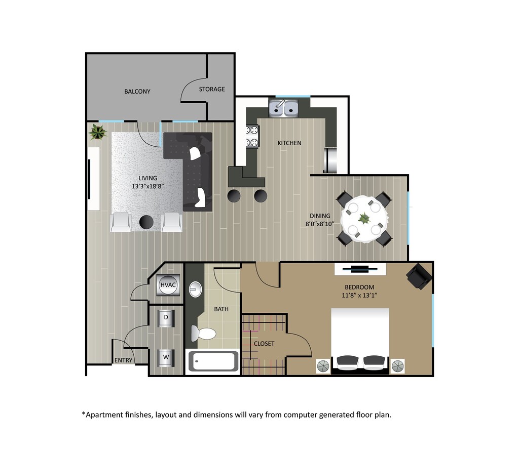 Apartment Model: A1From $1,3841 Bedroom, 1 Bath, 681 sq ftAvailable Now![]()