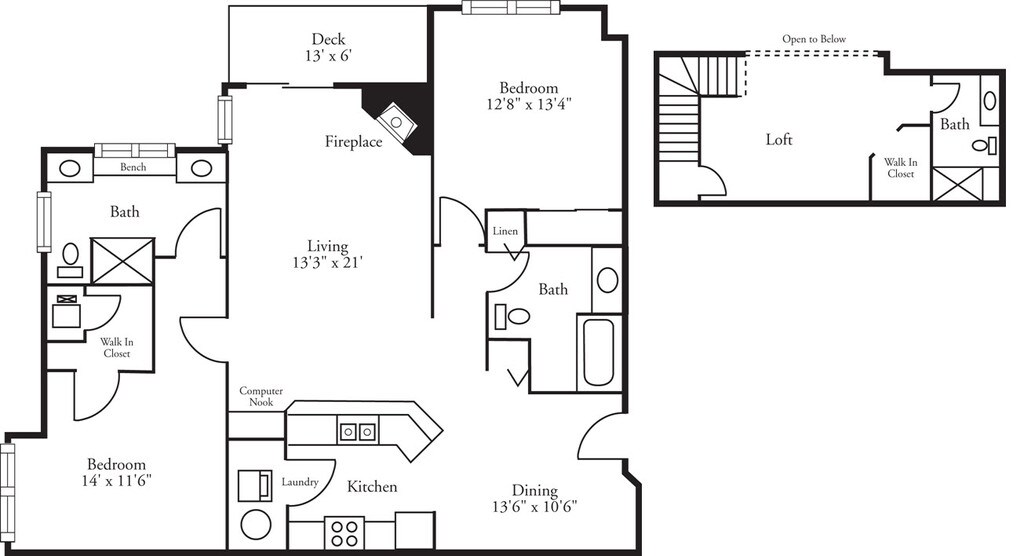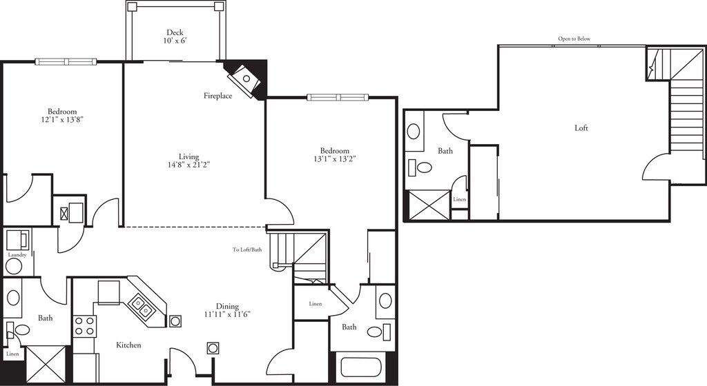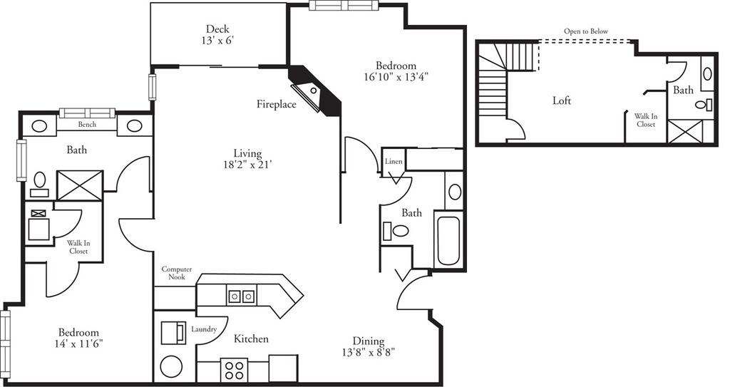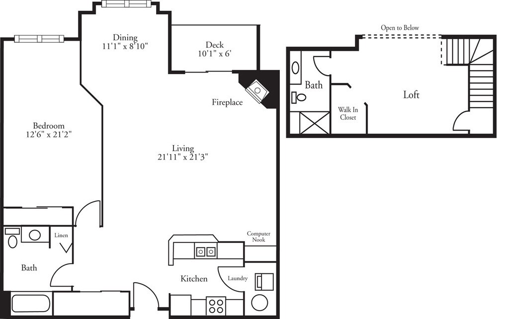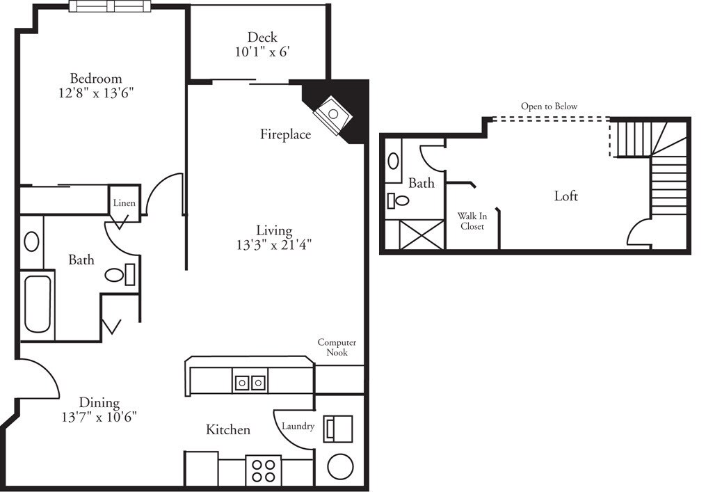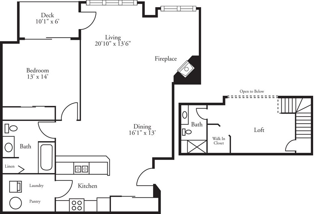 Lofts - 1 Bed, 2 Bath Durban w/Loft - Floorplan 2 ![]()